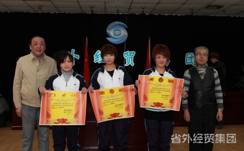 集團公司總經理趙彬(左一)為獲獎實習生頒發(fā)證書