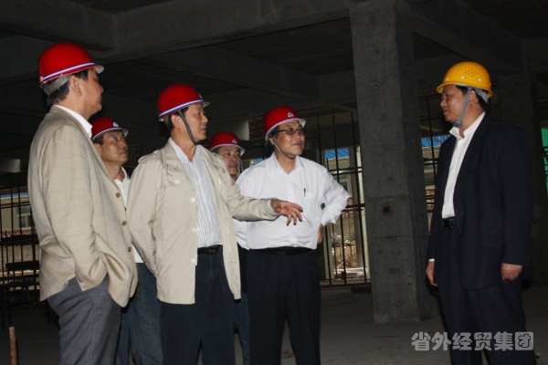 集團(tuán)公司董事長肖玉龍(左三)在工程施工現(xiàn)場檢查安全