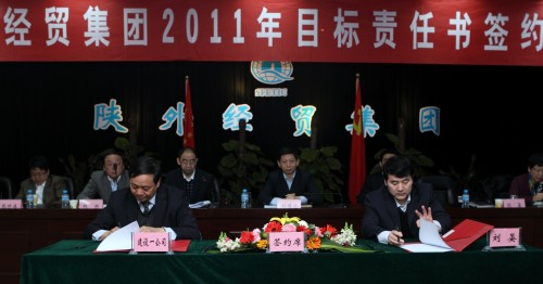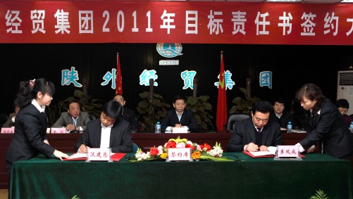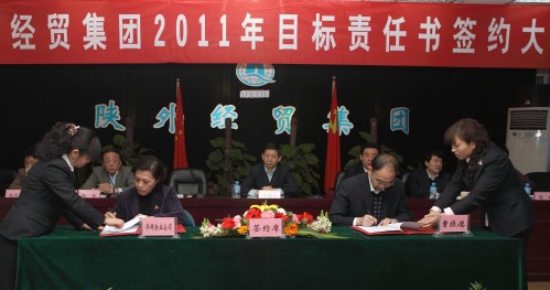 3月17日上午我集團在五樓會議室召開2011年目標責任書簽約大會。會議由集團公司副總經(jīng)理曹振德主持、副總經(jīng)理趙彬宣布2010年度經(jīng)營目標完成兌現(xiàn)情況,集團公司所屬20多個經(jīng)營單位與分管領導簽訂了經(jīng)營、管理、黨風廉政目標責任書。由此,使集團公司2011年完成銷售收入26億元的預期目標任務分解落實,責任到位。為全面完成“十二五”規(guī)劃良好開局奠定了堅實的基礎。集團公司黨委書記、董事長劉耀華做了重要講話,強調目標責任考核是一項體現(xiàn)科學發(fā)展觀要求,符合經(jīng)營發(fā)展、管理規(guī)范、廉潔從業(yè)行之有效的好制度,根據(jù)省委、省政府、省國資委毫不動搖的實施年度責任目標考核制度的要求,按照年初確定的目標分解任務、明確責任、狠抓落實,加強跟蹤問效,促進經(jīng)營平穩(wěn)快速發(fā)展,確保全面實現(xiàn)2011年經(jīng)營目標。