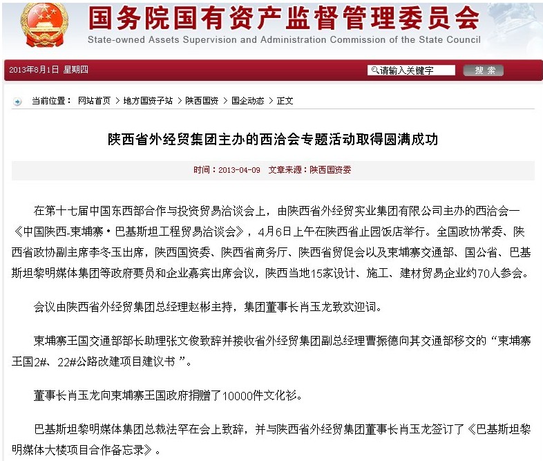 國(guó)務(wù)院國(guó)資委網(wǎng)站轉(zhuǎn)載:集團(tuán)公司主辦的西洽會(huì)專題活動(dòng)取得圓滿成功
