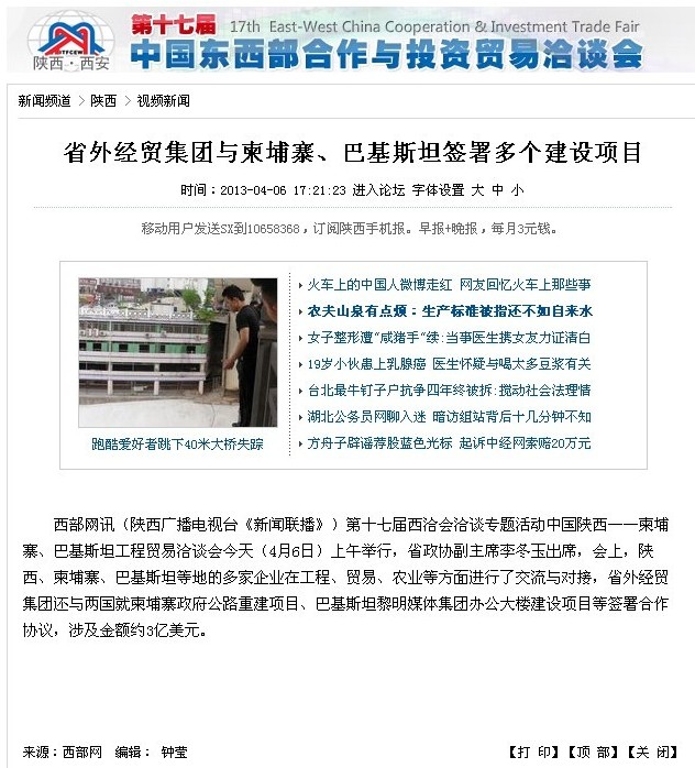十七屆東西部洽談會網(wǎng)站:省外經(jīng)貿(mào)集團與柬埔寨、巴基斯坦簽署多個建設(shè)項目