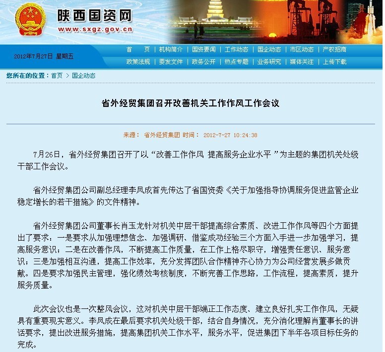 省國(guó)資委網(wǎng)站登載:省外經(jīng)貿(mào)集團(tuán)召開(kāi)改善機(jī)關(guān)工作作風(fēng)工作會(huì)議