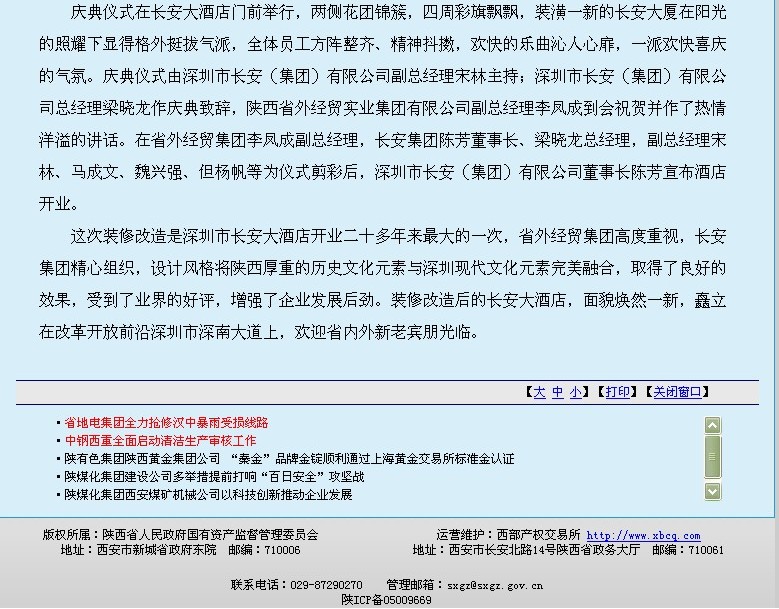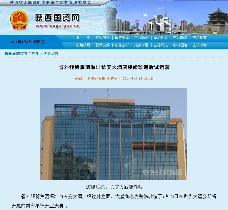 省國資網(wǎng)站登載我集團(tuán)深圳長安大酒店裝修后試運(yùn)營報(bào)道