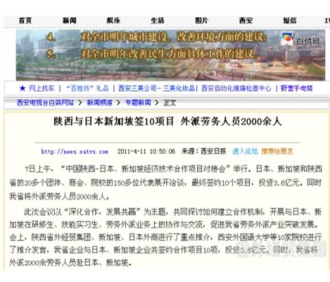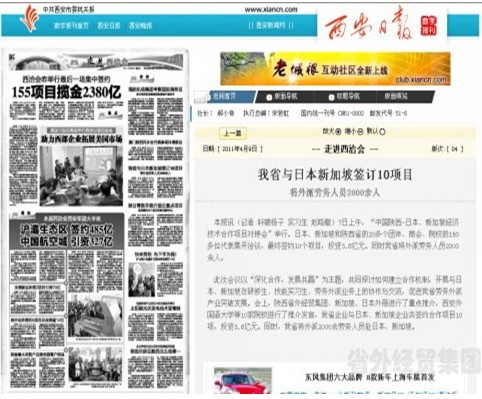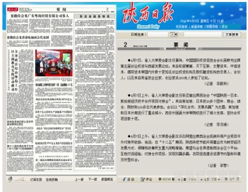 西安各大主流媒體報(bào)道集團(tuán)公司西洽會期間承辦中國陜西-日本、新加坡經(jīng)濟(jì)技術(shù)合作項(xiàng)目對接會”情況