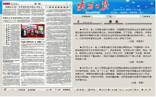 4月8日陜西日報報道集團(tuán)公司承辦“中國陜西-日本、新加坡經(jīng)濟(jì)技術(shù)合作項(xiàng)目對接會”會議情況