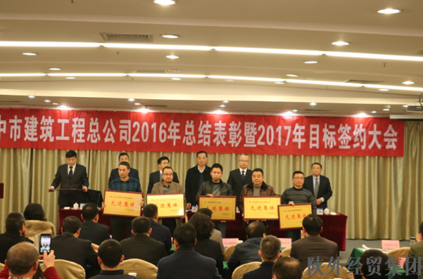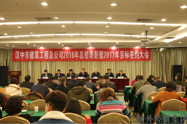 2017年1月20日,漢中市建筑工程總公司召開2016年度總結(jié)表彰暨2017年目標(biāo)簽約大會(huì)。漢建總公司領(lǐng)導(dǎo)班子成員,各職能部門負(fù)責(zé)人、成員、分公司、項(xiàng)目部負(fù)責(zé)人及成員,以及陜西晗瑞有限責(zé)任公司和漢江混凝土公司領(lǐng)導(dǎo)和同志共計(jì)110余人參加會(huì)議。陜西省外經(jīng)貿(mào)集團(tuán)公司黨委委員、副總經(jīng)理呂軍政同志蒞臨大會(huì)。
