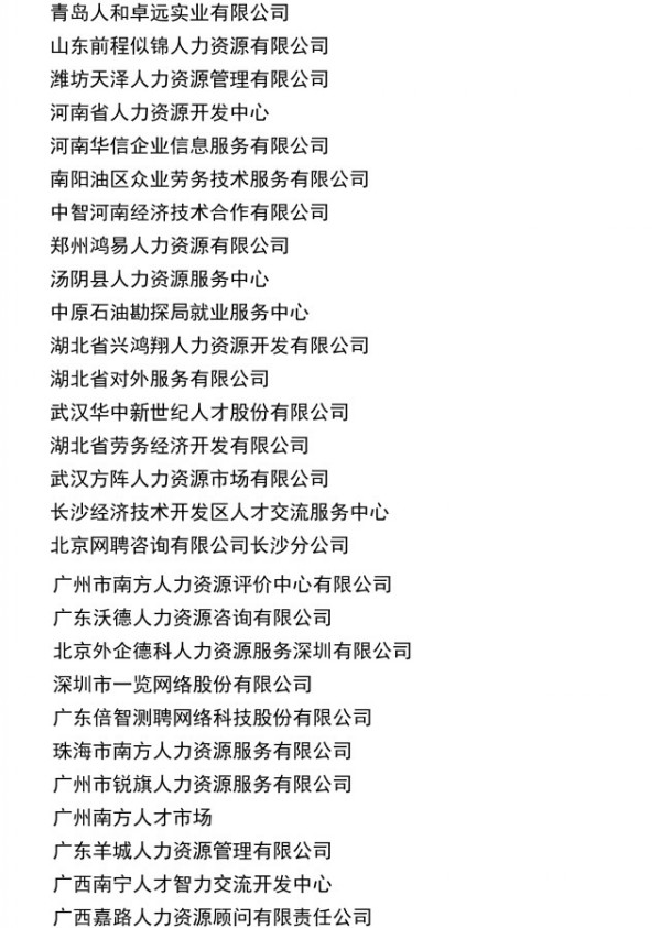 附:128家“全國(guó)人力資源誠(chéng)信服務(wù)示范機(jī)構(gòu)”名單