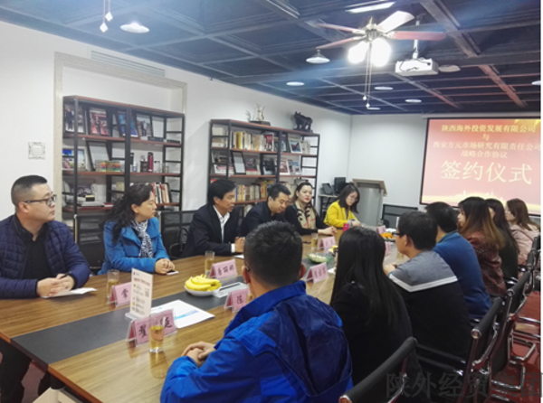 2018年1月11日上午,陜海投公司與西安方元市場研究有限責任公司在西安舉行戰(zhàn)略合作簽約儀式。陜海投公司董事長丁永忠與方元市場研究公司董事長兼CEO孫華分別代表兩家企業(yè)簽署戰(zhàn)略合作協(xié)議。